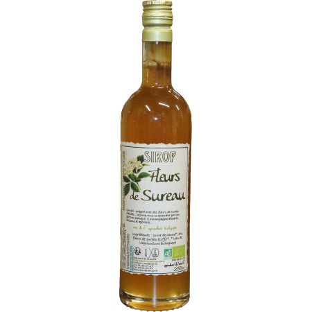 Sirop artisanal a base de fruits frais, saveur sureau. bouteille de 25cl.