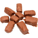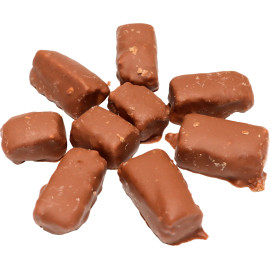 De délicieuse bouchées au praliné noisette avec des éclats de cacahuètes enrobées de chocolat au lait.