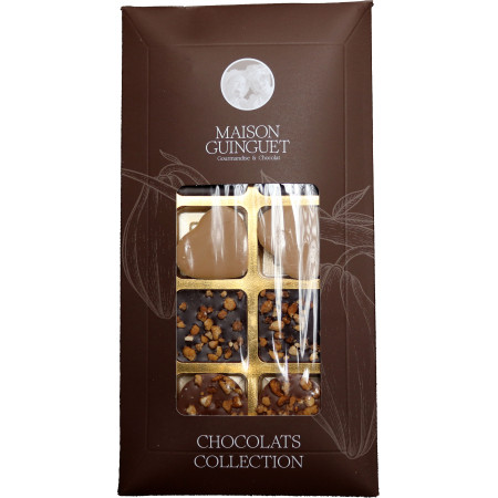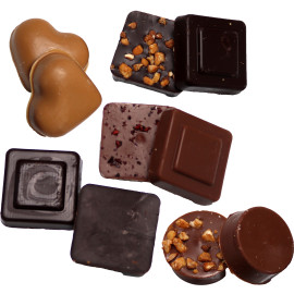 Découvrez un assortiment de 10 chocolats aux différents parfums. Vous pourrez déguster des chocolats gourmands blancs et lait, carrés caramel noir et lait, profitez d'un véritable instant gourmand !