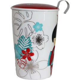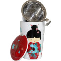 Tisanière de très haute qualité a double paroi et son couvercle en porcelaine avec filtre inox