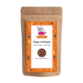 Ingrédients : Rooibos, morceaux de caramel à la crème (lait écrémé condensé sucré, sucre, sirop de glucose, beurre concentré, agent humidifiant: sorbitol, émulsifiant : mono- et diglycérides d'acides gras), morceaux d´amande, morceaux de croquant (sucre, noisettes, sucre inverti), perles de sel (5 %), arôme