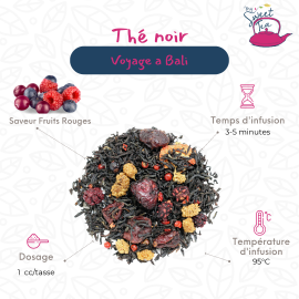 VOYAGE À BALI déploie une infusion généreuse, à la fois intense et veloutée, qui évoque la fraîcheur d’un panier de baies cueillies au soleil.