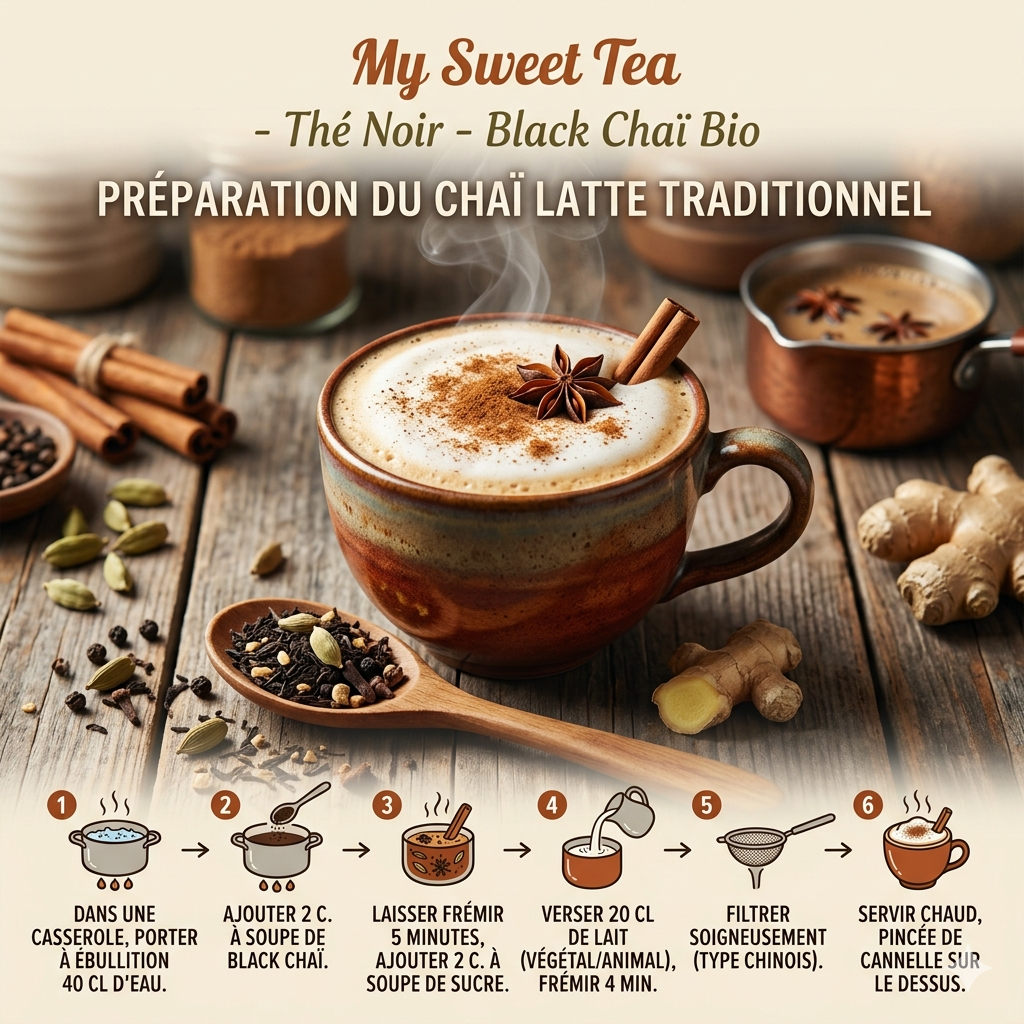 Déguster un chaï latte authentique, riche et épicé, comme au cœur des maisons de thé traditionnelles.